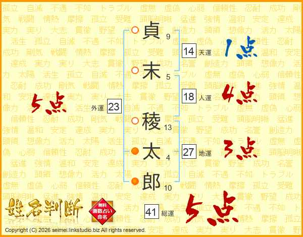 貞末稜太郎さんの総運は41画の5点!