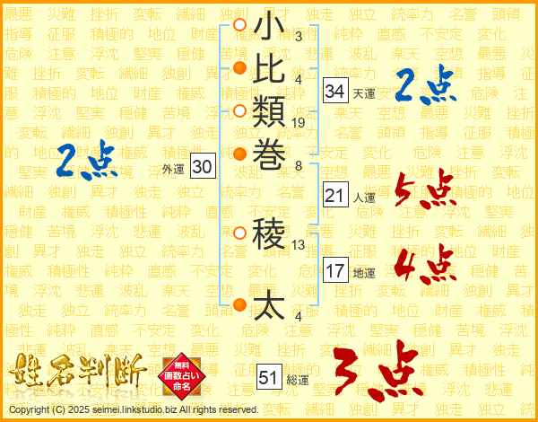 小比類巻稜太さんの総運は51画の3点!