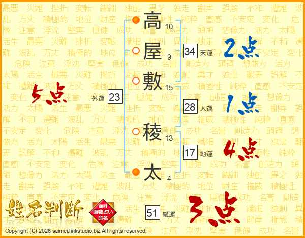 高屋敷稜太さんの総運は51画の3点!