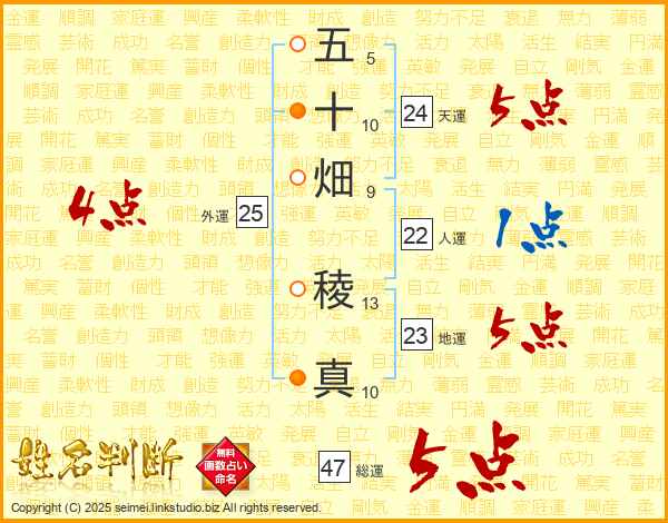 五十畑稜真さんの総運は47画の5点!