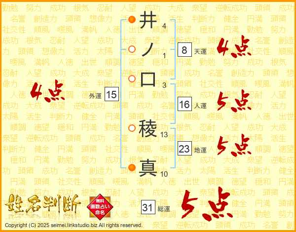 井ノ口稜真さんの総運は31画の5点!