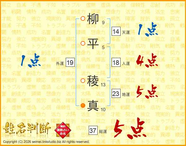 柳平稜真さんの総運は37画の5点!