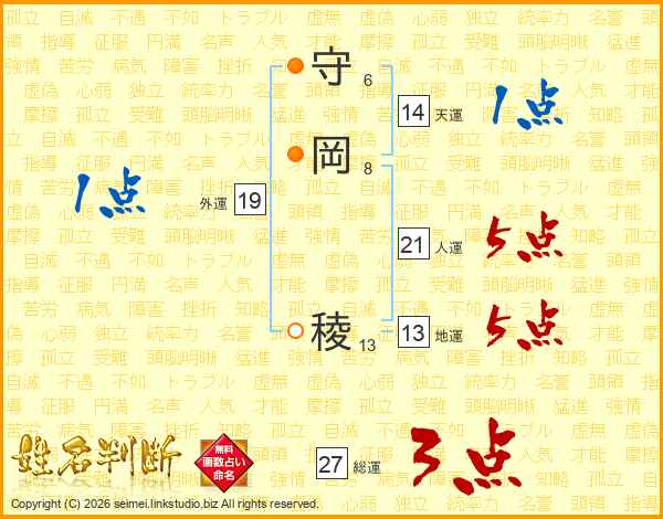 守岡稜さんの天運は14画の1点!