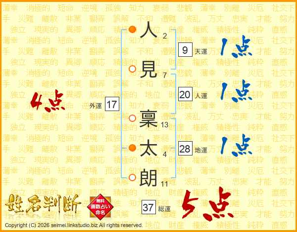 人見稟太朗さんの総運は37画の5点!