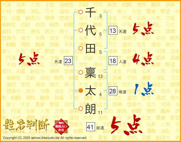 千代田稟太朗さんの総運は41画の5点!