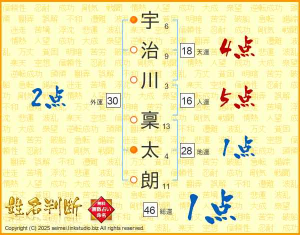 宇治川稟太朗さんの総運は46画の1点!