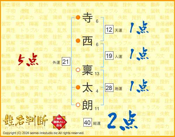 寺西稟太朗さんの人運は19画の1点!