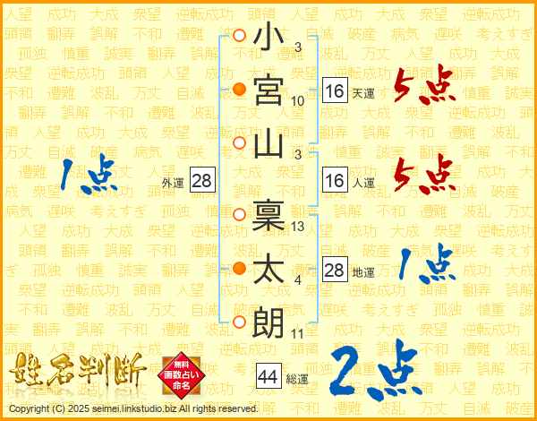 小宮山稟太朗さんの総運は44画の2点!