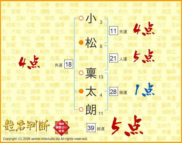 小松稟太朗さんの総運は39画の5点!