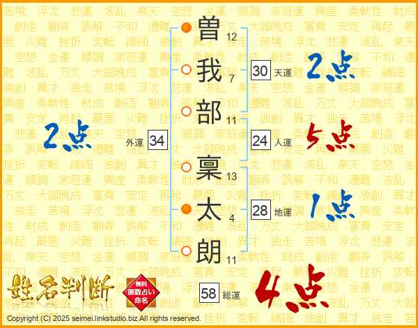 曽我部稟太朗さんの天運は30画の2点!