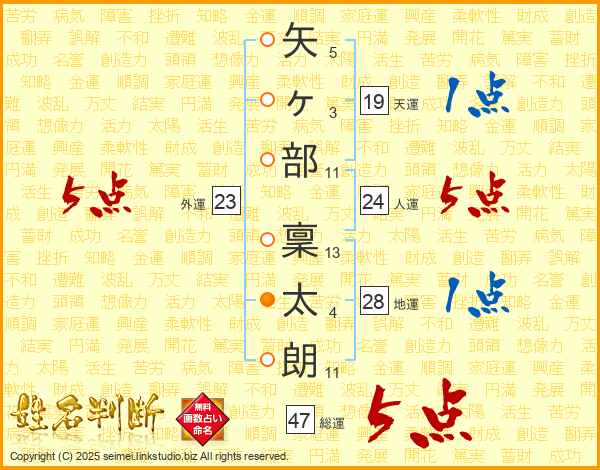 矢ヶ部稟太朗さんの総運は47画の5点!