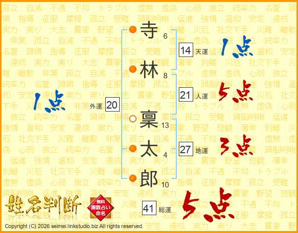 寺(6画)林(8画) 稟(13画)太(4画)郎(10画)