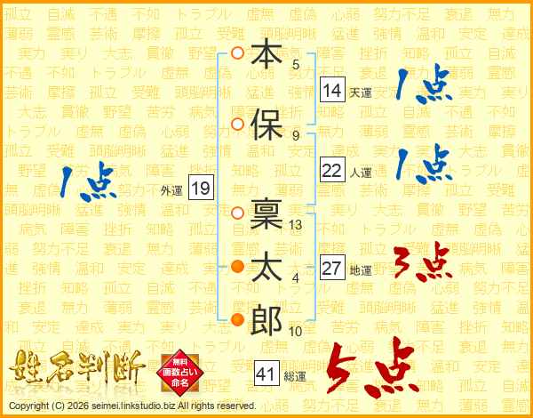 本保稟太郎さんの総運は41画の5点!