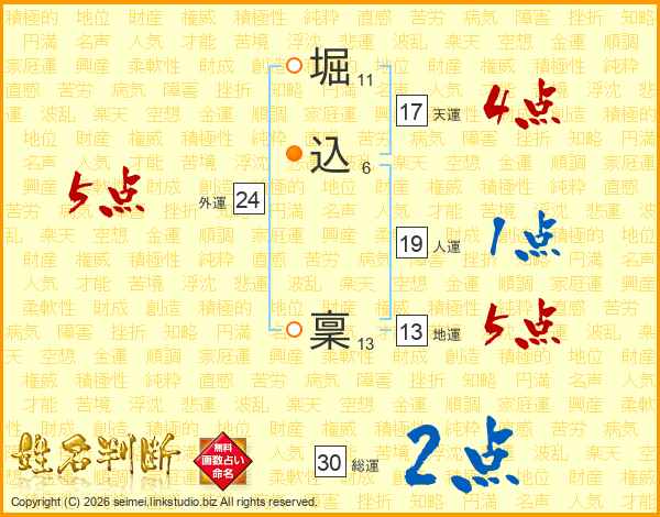 堀(11画)込(6画) 稟(13画)