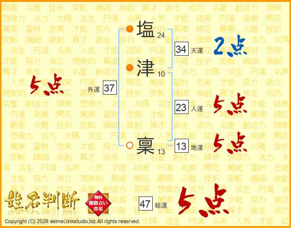 塩津稟さんの総運は47画の5点!