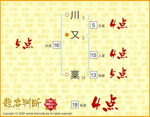 川又稟さんの総運は18画の4点!