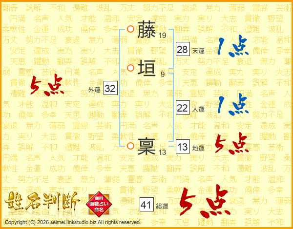 藤垣稟さんの外運は32画の5点!