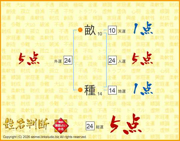 畝種さんの総運は24画の5点!