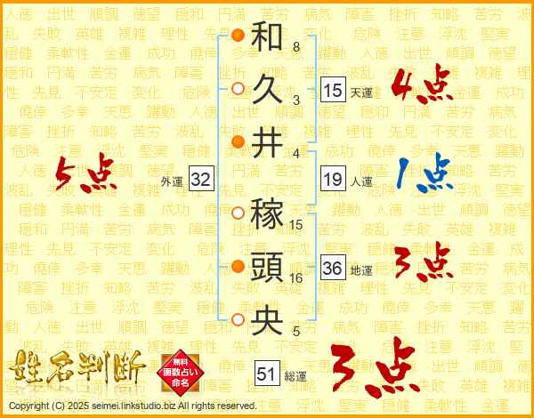 和久井稼頭央さんの外運は32画の5点!