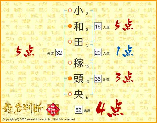 小和田稼頭央さんの外運は32画の5点!