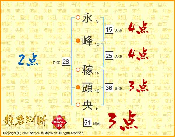 永峰稼頭央さんの総運は51画の3点!