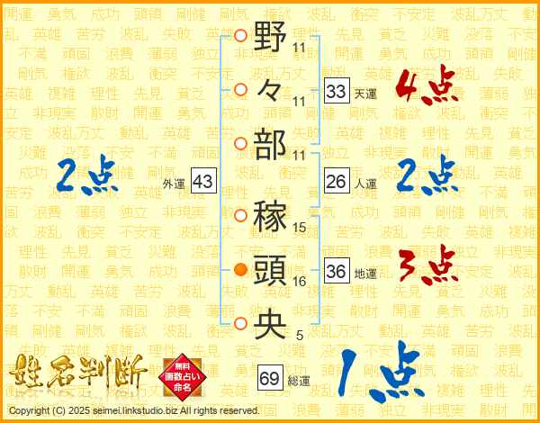 野々部稼頭央さんの天運は33画の4点!