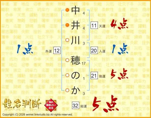 中(4画)井(4画)川(3画) 穂(17画)の(1画)か(3画)