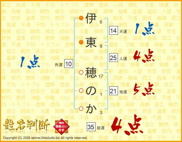 伊東穂のかさんの総運は35画の4点!