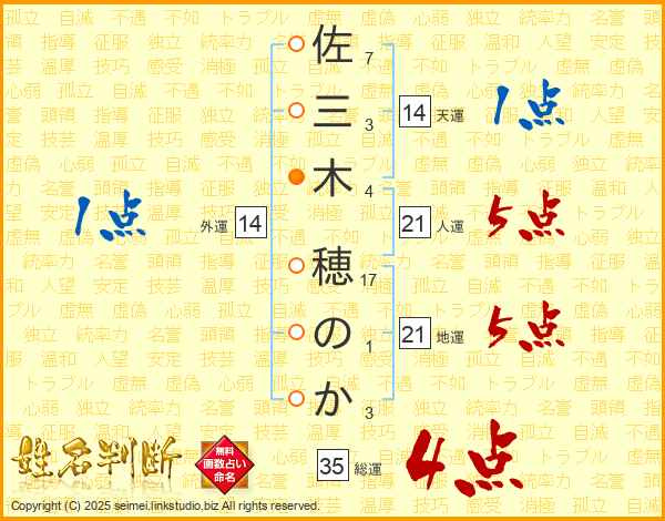 佐三木穂のかさんの総運は35画の4点!