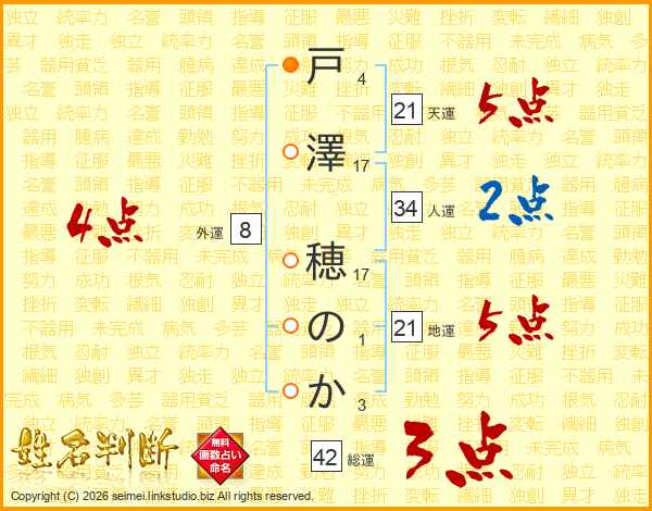 戸澤穂のかさんの総運は42画の3点!