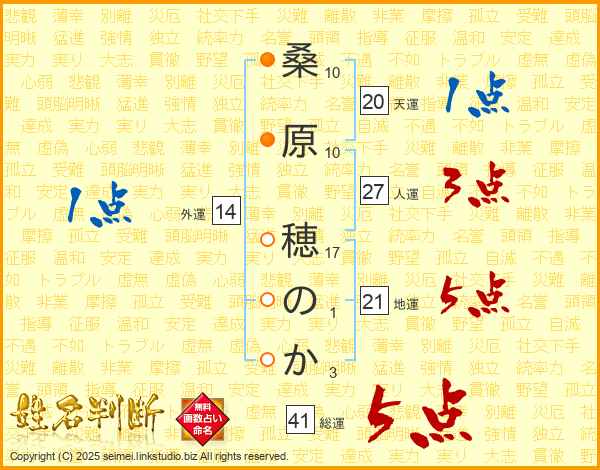 桑(10画)原(10画) 穂(17画)の(1画)か(3画)