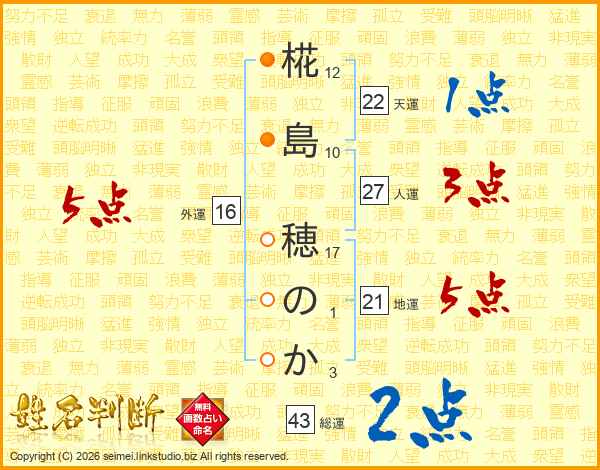 椛(12画)島(10画) 穂(17画)の(1画)か(3画)