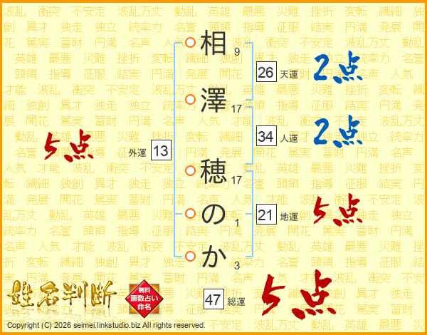 相澤穂のかさんの総運は47画の5点!