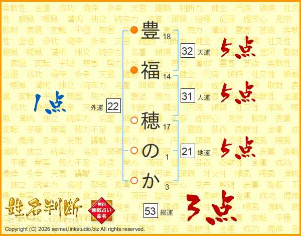 豊福穂のかさんの総運は53画の3点!