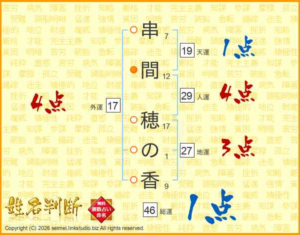 串間穂の香さんの外運は17画の4点!