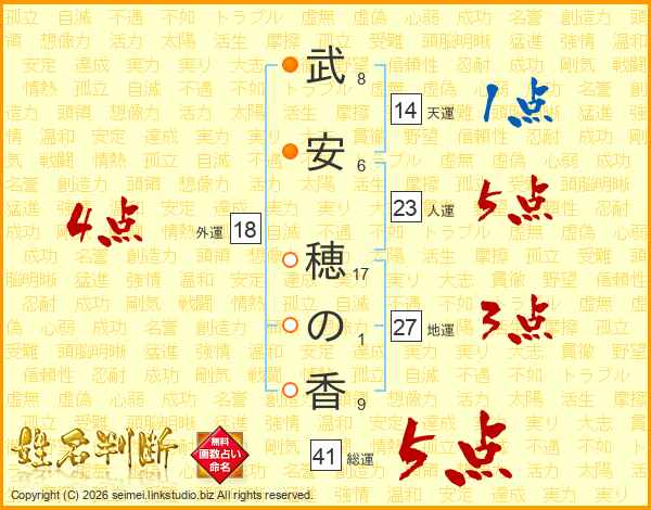 武安穂の香さんの総運は41画の5点!