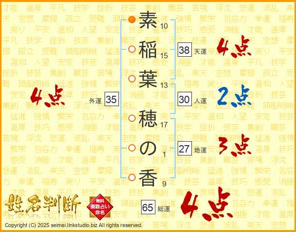 素稲葉穂の香さんの総運は65画の4点!