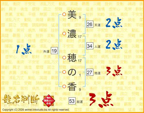 美(9画)濃(17画) 穂(17画)の(1画)香(9画)