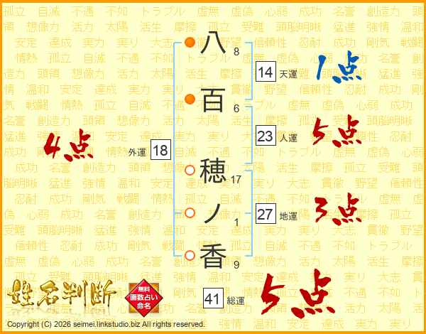 八百穂ノ香さんの総運は41画の5点!