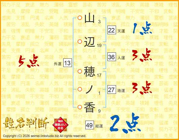 山辺穂ノ香さんの総運は49画の2点!