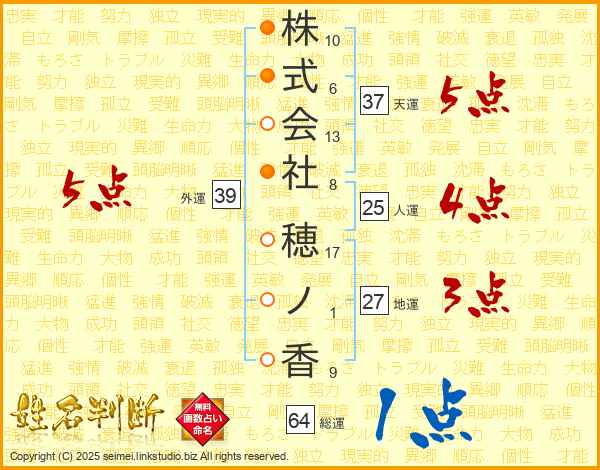 株(10画)式(6画)会(13画)社(8画) 穂(17画)ノ(1画)香(9画)