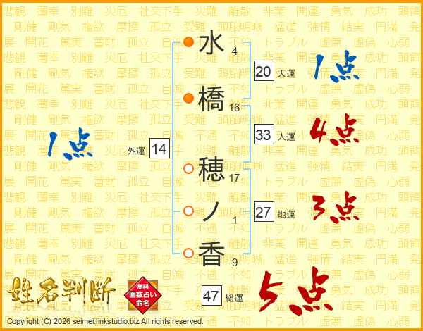 水橋穂ノ香さんの総運は47画の5点!