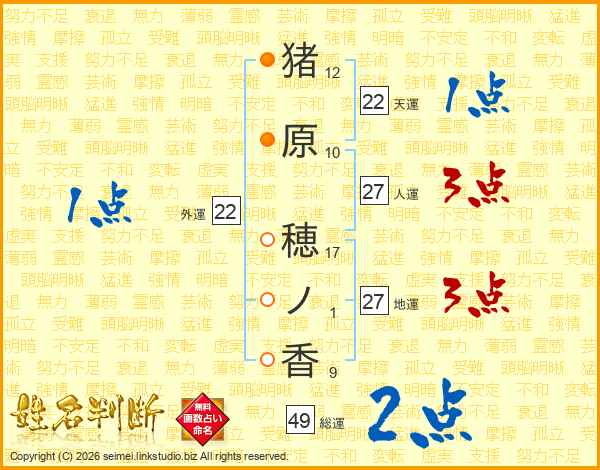 猪原穂ノ香さんの総運は49画の2点!