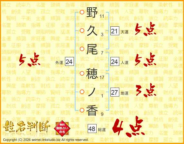 野久尾穂ノ香さんの外運は24画の5点!