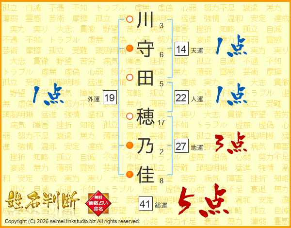川守田穂乃佳さんの総運は41画の5点!