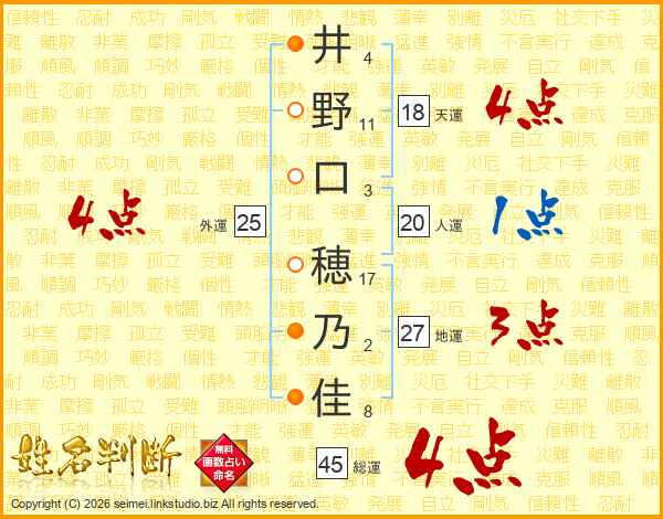 井野口穂乃佳さんの総運は45画の4点!