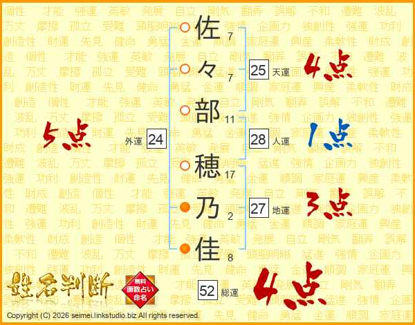 佐(7画)々(7画)部(11画) 穂(17画)乃(2画)佳(8画)