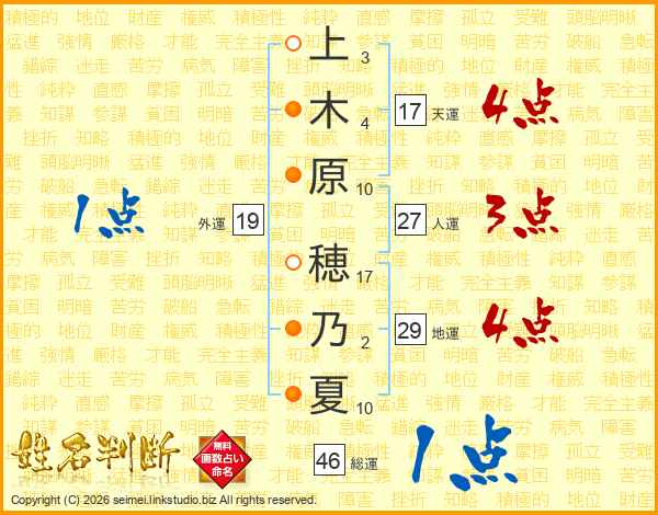 上木原穂乃夏さんの総運は46画の1点!