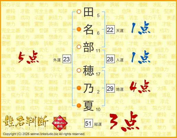 田名部穂乃夏さんの総運は51画の3点!