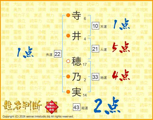 寺井穂乃実さんの総運は43画の2点!
